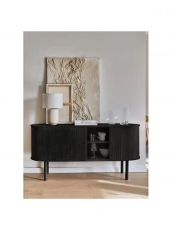 Westwing Collection Schwarzes Sideboard Luca mit Türen aus Massivholz, B 160 x H 70 cm