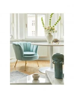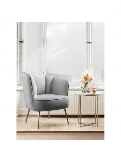 Westwing Collection Samt-Schaukelstuhl Wing in Grau mit Metall-Füßen, B 76 x T 108 cm