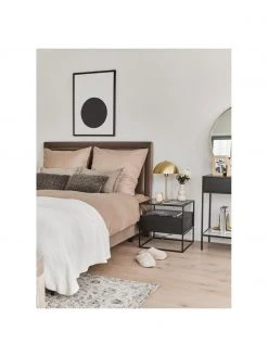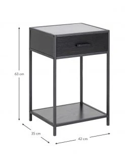 Zuiver Holz-Nachttisch Barbier mit Schiebetür und geriffelter Front in Walnussfarben, B 45 x H 59 cm