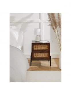 Zuiver Holz-Nachttisch Barbier mit Schiebetür und geriffelter Front in Walnussfarben, B 45 x H 59 cm