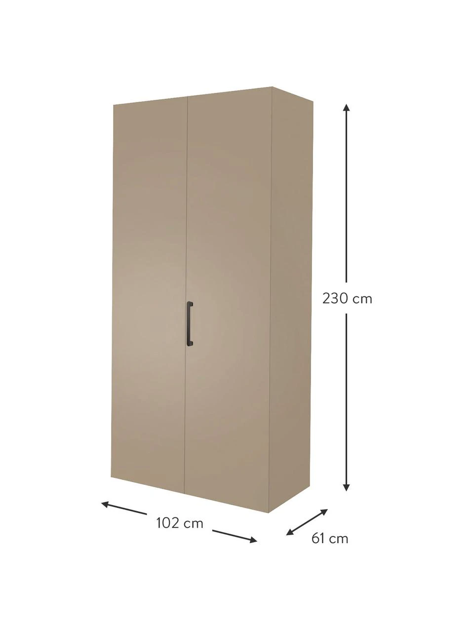 B 102 cm, H 230 cm, T 61 cm
