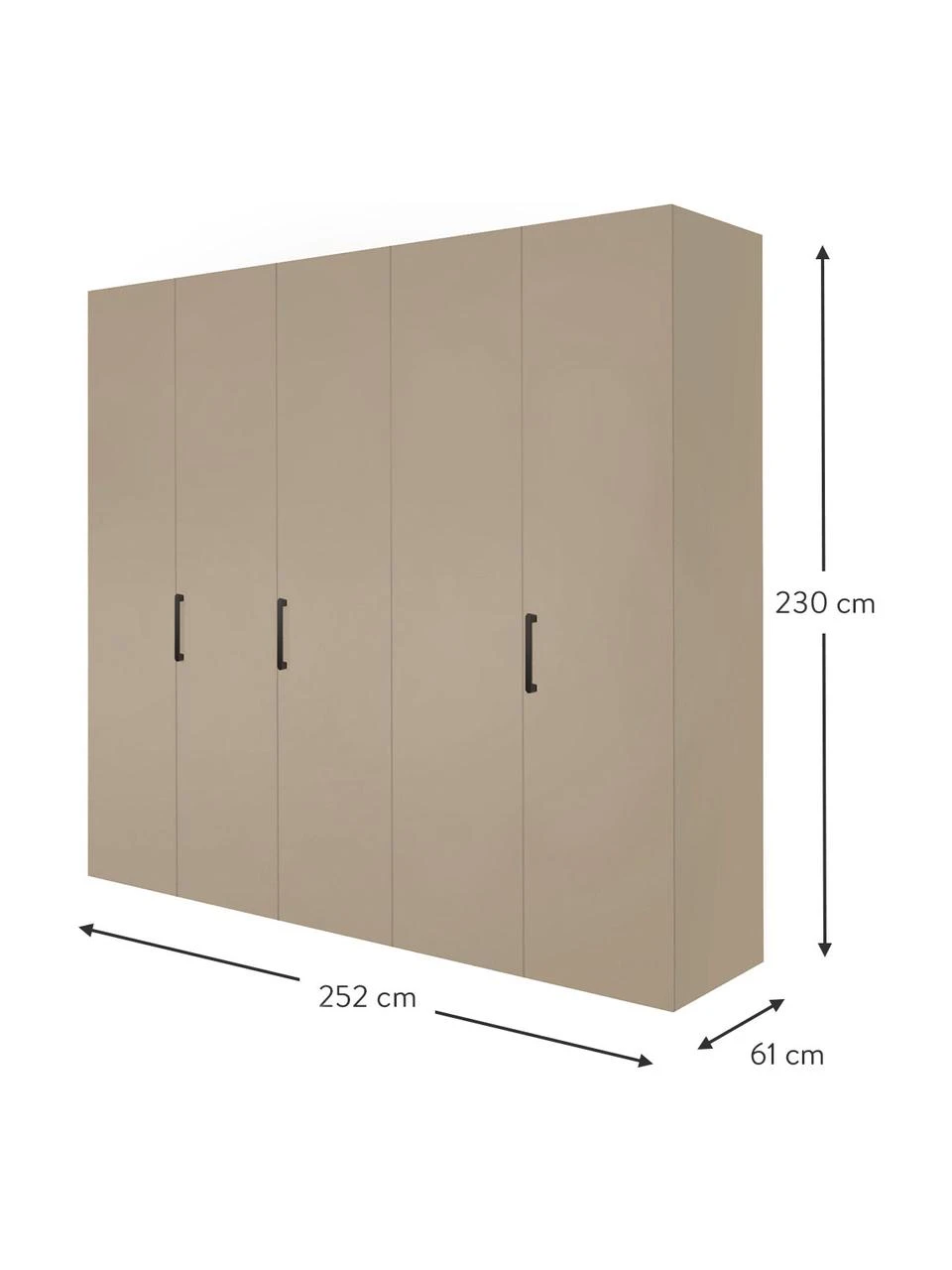 B 252 cm, H 230 cm, T 61 cm