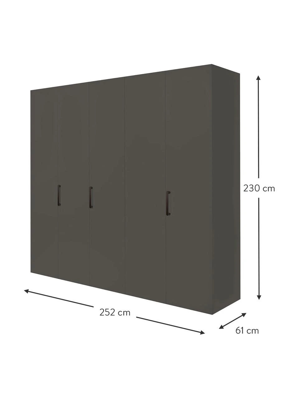 B 252 cm, H 230 cm, T 61 cm