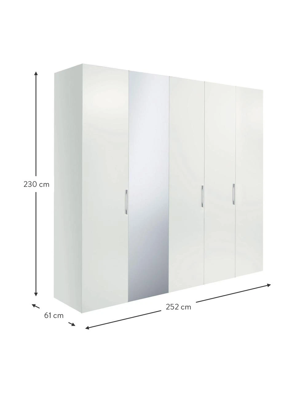 Der moderne Kleiderschrank bietet viel Stauraumfläche für das Schlafzimmer. Hinter den Türen befinden sich Kleiderstangen sowie Einlegböden. Der Schrank ist in verschiedenen Größen sowie mit und ohne Spiegeltüre erhältlich. Dieser Artikel wird logistisch durch Hülsta abgewickelt.