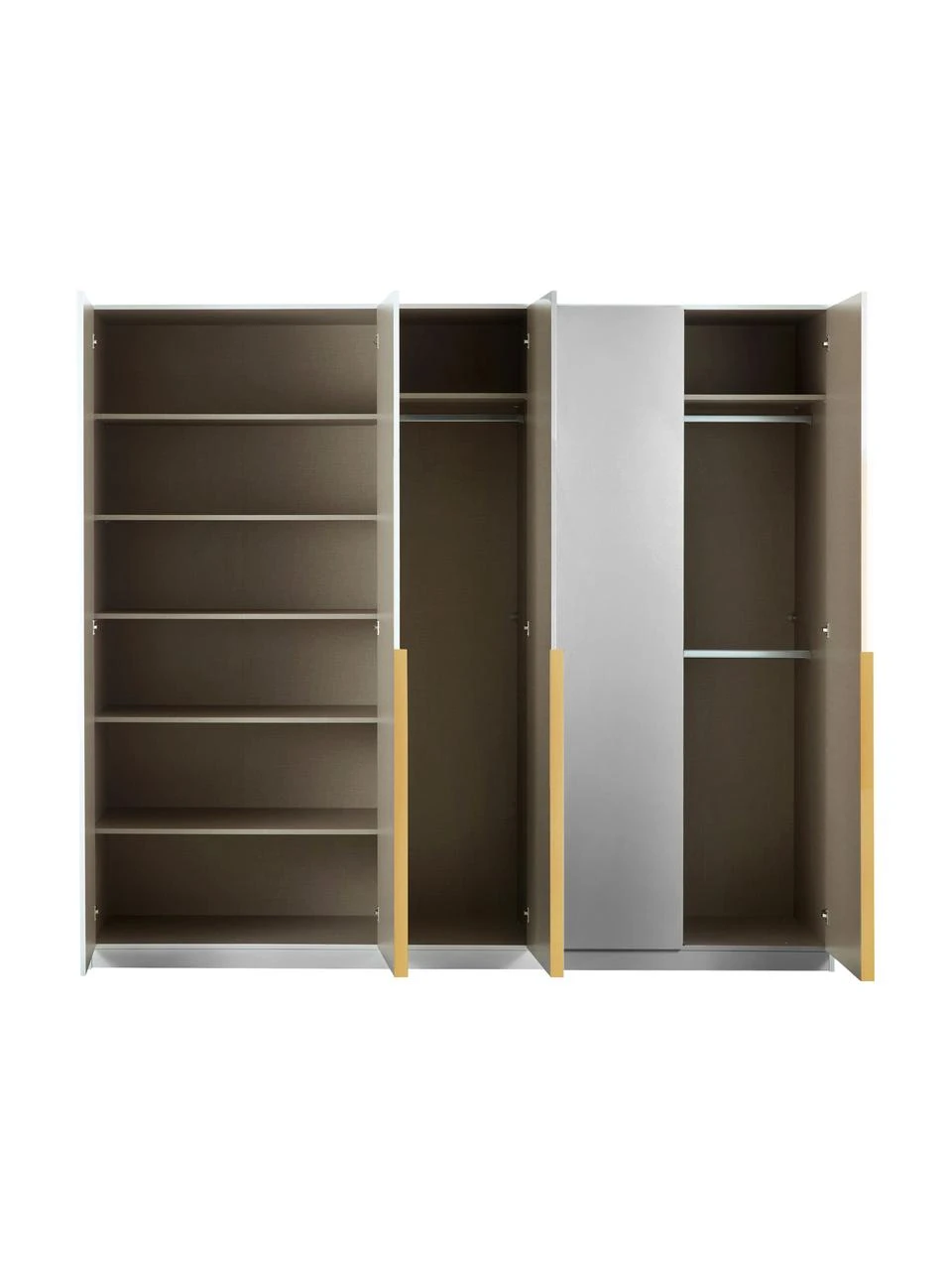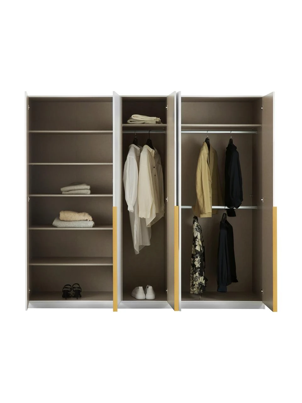 Der Drehtürenschrank von rauch ist eine tolle Stauraumlösung für das Schlafzimmer. Der Kleiderschrank überzeugt mit einem modernen puristischen Design. Lange Griffleisten mit einer angenehmen Haptik und praktischer Handhabung beim Öffnen und Schließen der Drehtüren runden die Optik gekonnt ab. Im Inneren begeistert der Schrank mit seinem Stauraumkonzept: Hinter den Drehtüren befinden sich 3 Kleiderstangen sowie 7 Einlegeböden, die individuell nach Ihren Wünschen angebracht werden können. Sind alle Drehtüren geöffnet, haben Sie Ihren gesamten Schrankinhalt im Blick und somit eine komplette Übersicht über Ihre Garderobe.