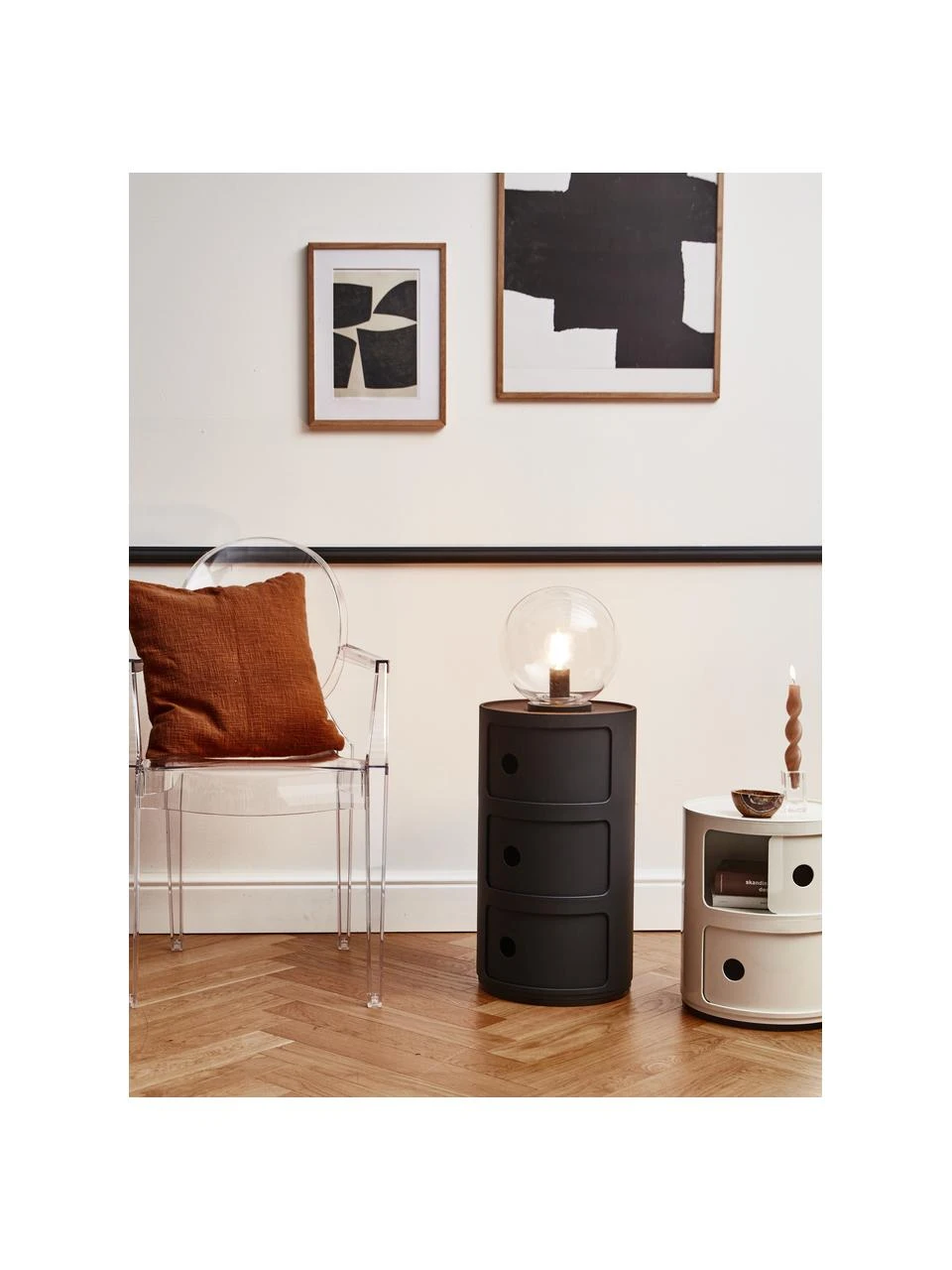 Das Componibile, der große Bestseller von Kartell ist auch in mattweißer und mattschwarzer Ausführung erhältlich. Die neue Ausgabe aus recyceltem Material kommt aus Industrieabfällen und bewahrt hinsichtlich von Widerstandsfähigkeit und Zweckmäßigkeit die gleichen Eigenschaften der ursprünglichen Version.