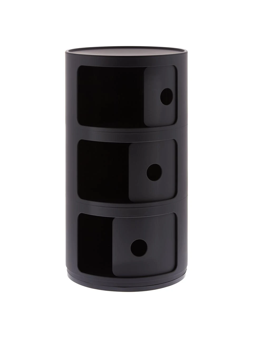 Container bestehend aus 3 runden Aufbewahrungsfächern inklusive Schiebetüren