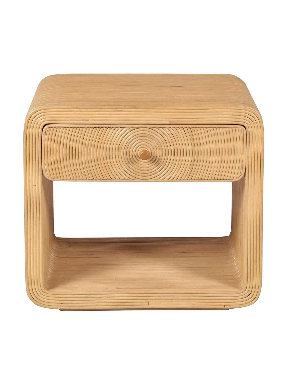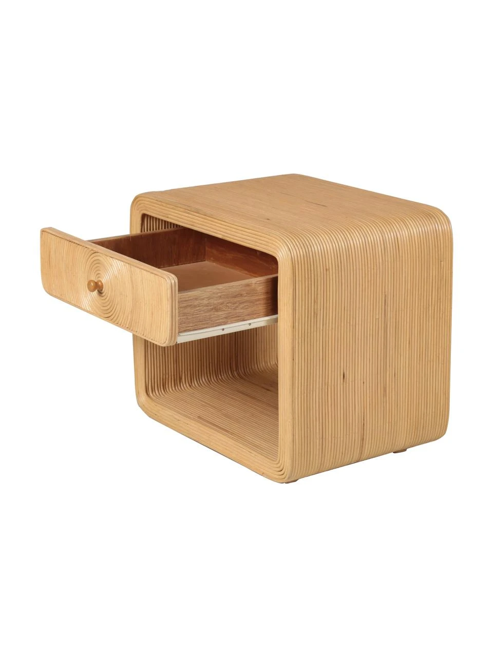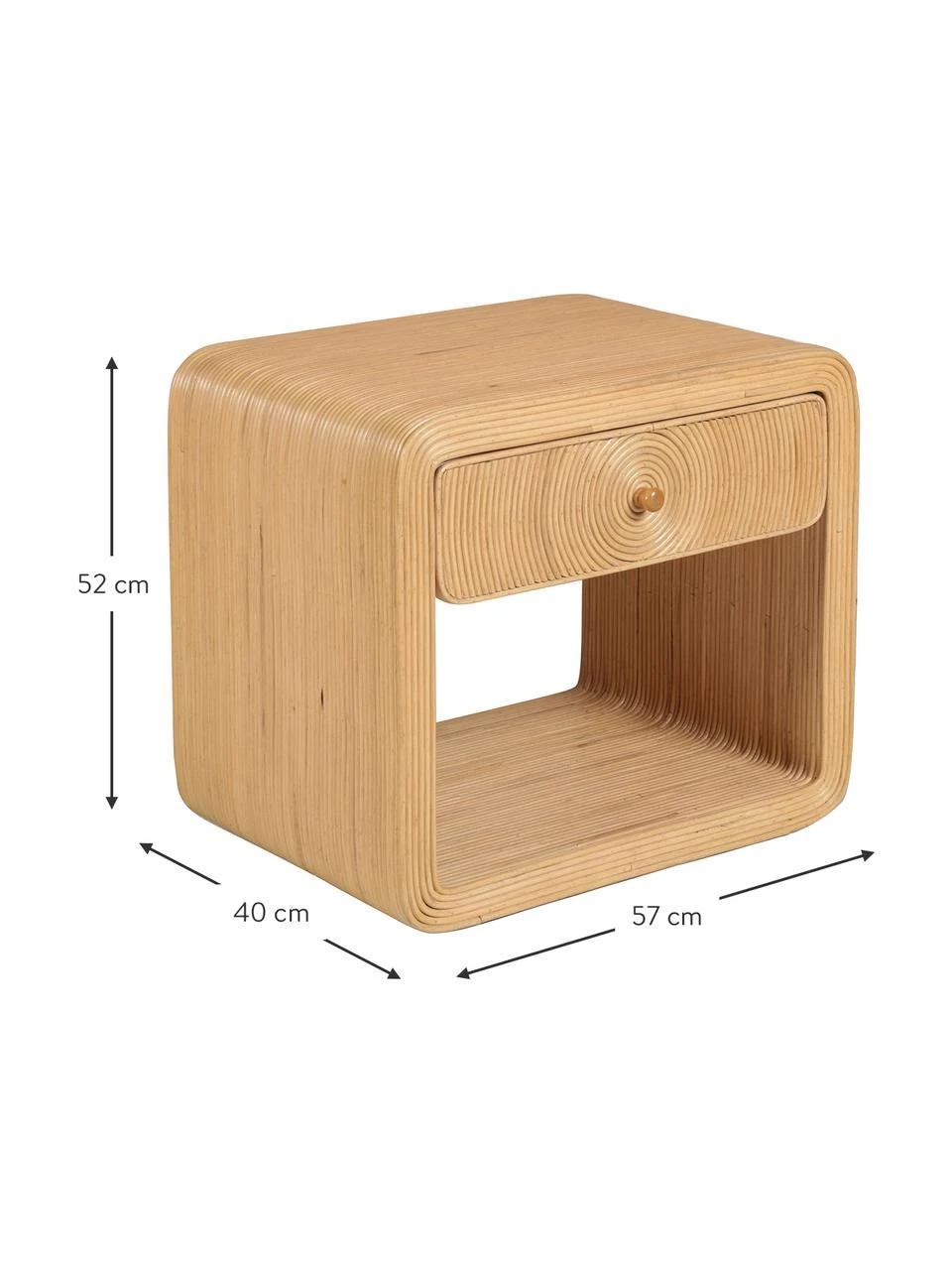 Zuiver Holz-Nachttisch Barbier mit Schiebetür und geriffelter Front in Hellbraun, B 45 x H 59 cm