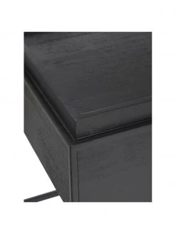 Heißt: Robustes Mangoholz und geradelininges, pulverbeschichtetes Metall. Durch die abnehmbare Tischplatte kann der Innenraum des Tisches als Stauraum genutzt werden. Stylishes Industrial-Design, perfekt zum Präsentieren und Verstauen.