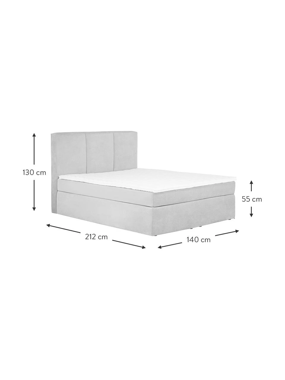 Kopfteil: B 140 cm, T 12 cm, H 130 cm
