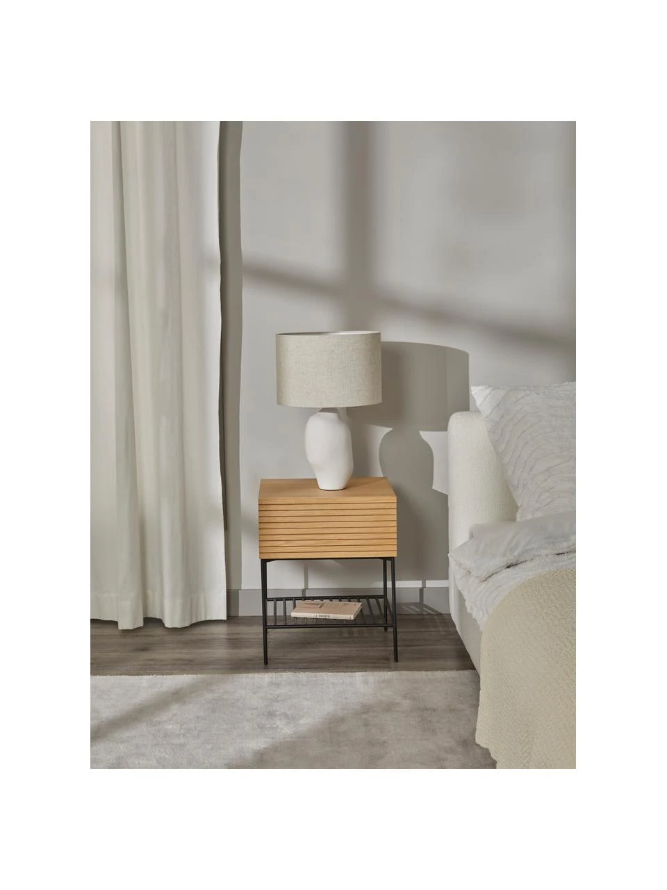 Korpus: Mitteldichte Holzfaserplatte (MDF) mit Eichenholzfurnier