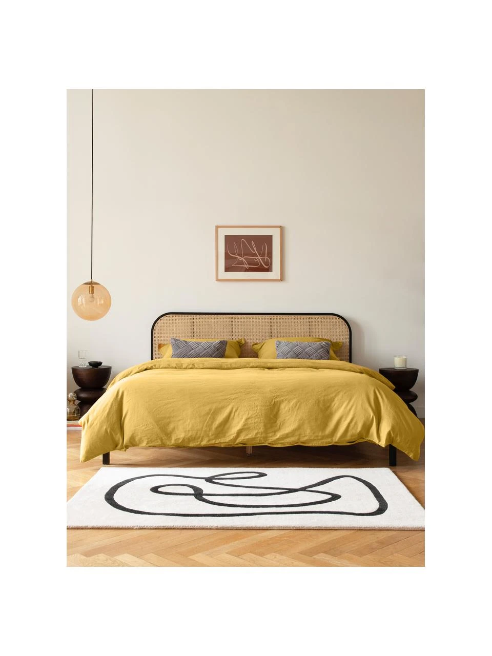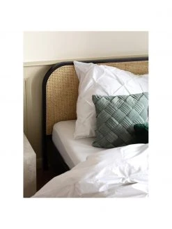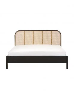 Holzbettrahmen mit Kopfteil aus Rattan