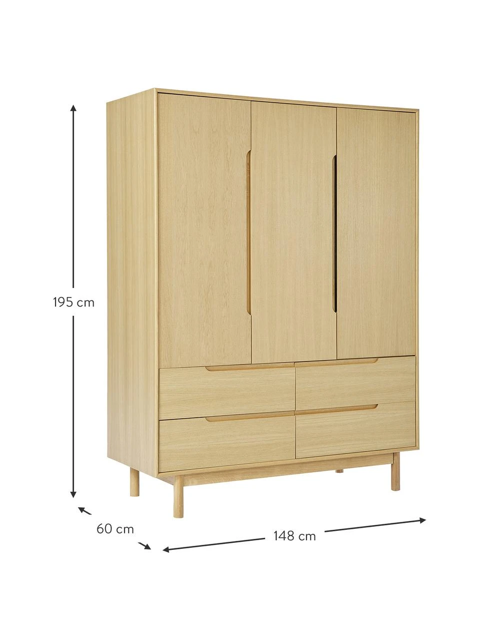 B 148 cm, H 195 cm, T 60 cm