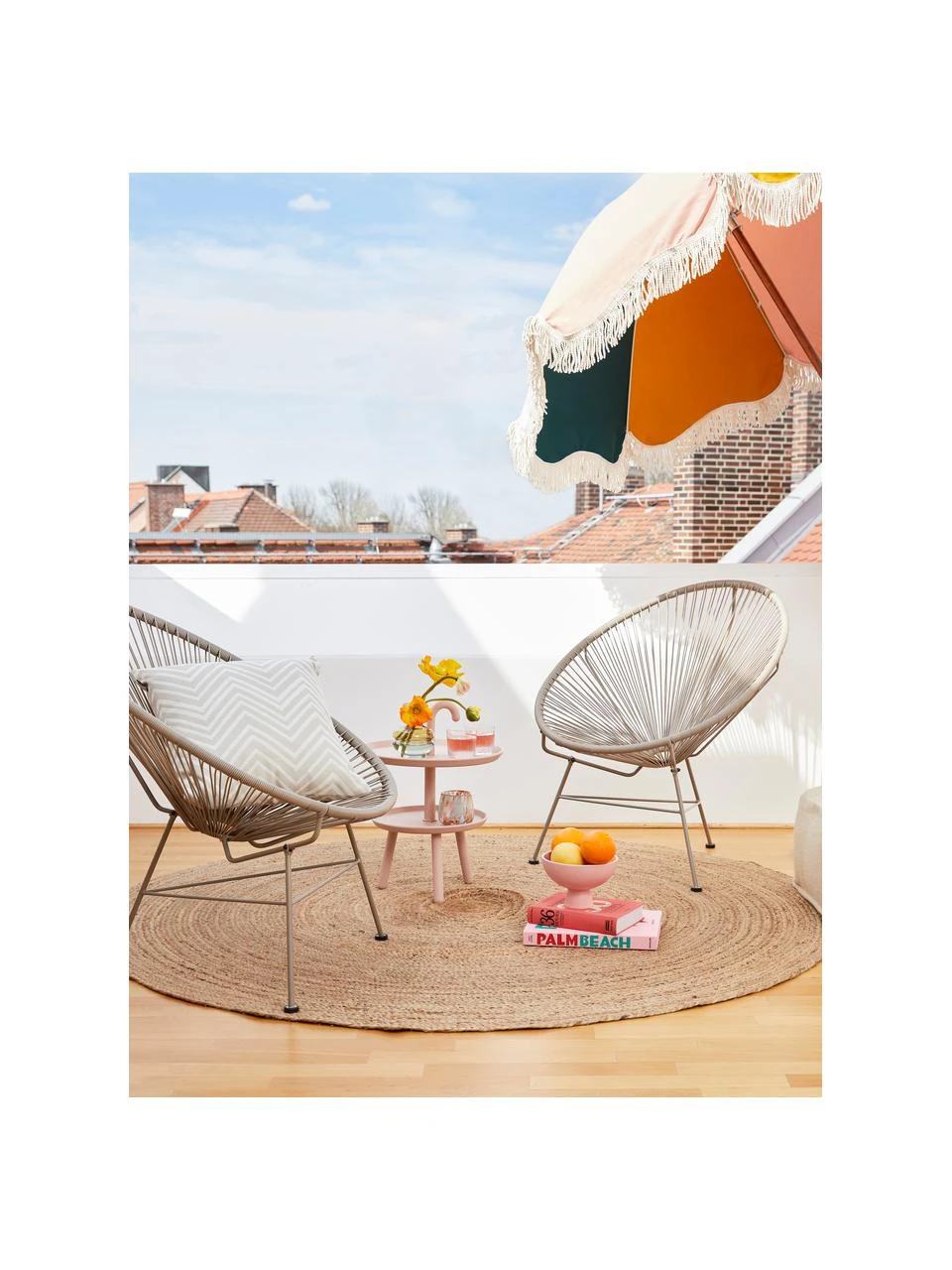 Der handgewebte Sessel „Bahia“ mit einer Sitzfläche aus Kunststoff sieht so schön nach Sommer und Urlaub aus! Einmal auf dem Balkon oder der Terrasse aufgestellt, lässt es sich mit ihm herrlich entspannen. Fehlt nur noch die Sonne im Gesicht und der Cocktail in der Hand! Unser Styling-Tipp: Mit Kissen oder Fellen wird er noch gemĂĽtlicher und kann auch super indoor verwendet werden.