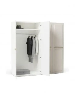 Die einzelnen Kleiderschrankmodule können mit Hilfe von Verbindungsschrauben, an der Innenseite des Kleiderschrankes, individuell zusammengesteckt und erweitert werden.