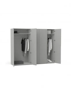 Die einzelnen Kleiderschrankmodule können mit Hilfe von Verbindungsschrauben, an der Innenseite des Kleiderschrankes, individuell zusammengesteckt und erweitert werden.