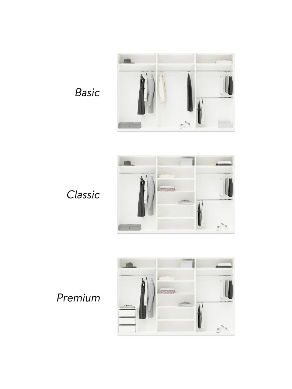 – Modularer Kleiderschrank mit Basic Interior inkl. 4 Kleiderstangen, 3 Einlegeböden