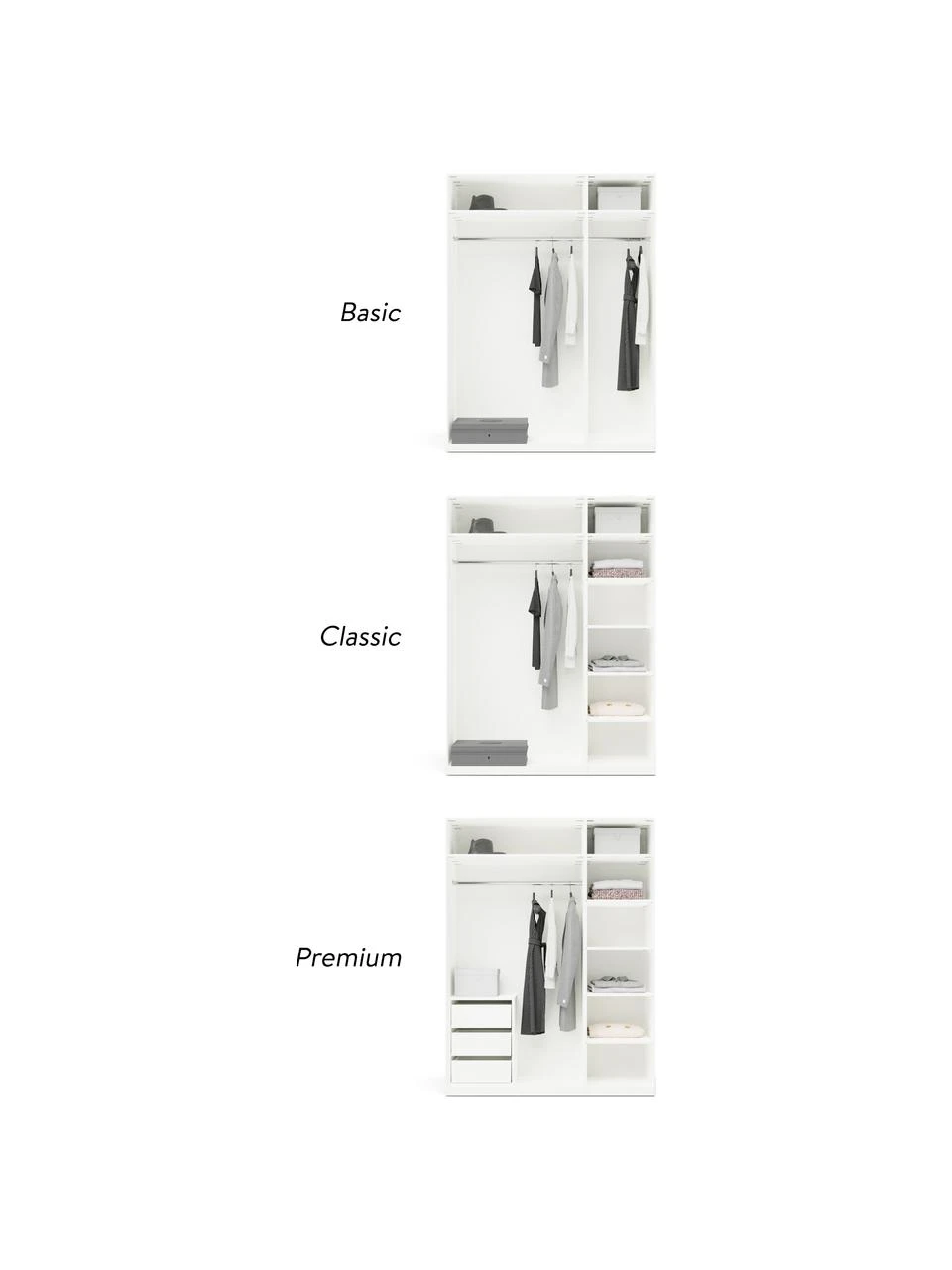 So einzigartig wie Ihr Style sollte auch Ihr Kleiderschrank sein! Unser Kleiderschrank Simone bittet Ihnen drei unterschiedliche Interieurs zur Auswahl, um Ihren individuellen Bedürfnissen gerecht zu werden: