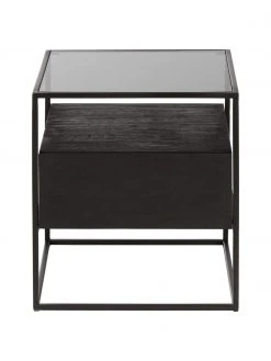 – Nachttisch mit Glas-Tischplatte und einer Schublade