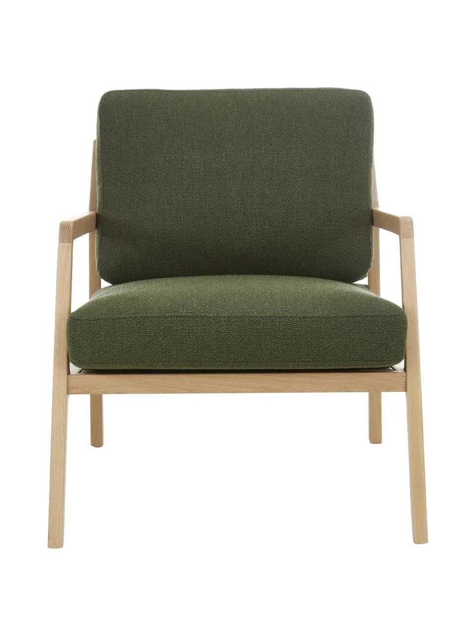 – Sessel mit Gestell aus Eichenholz und groben Webstoff